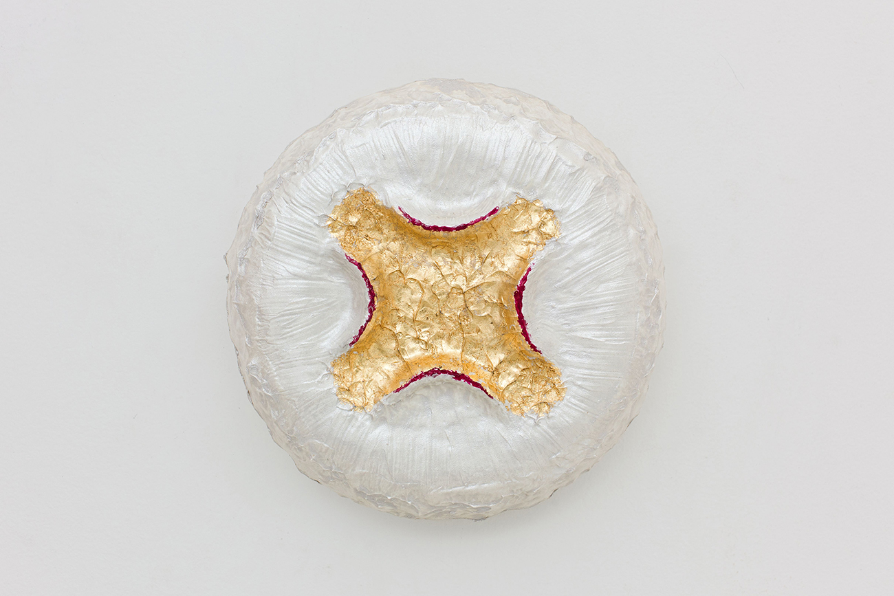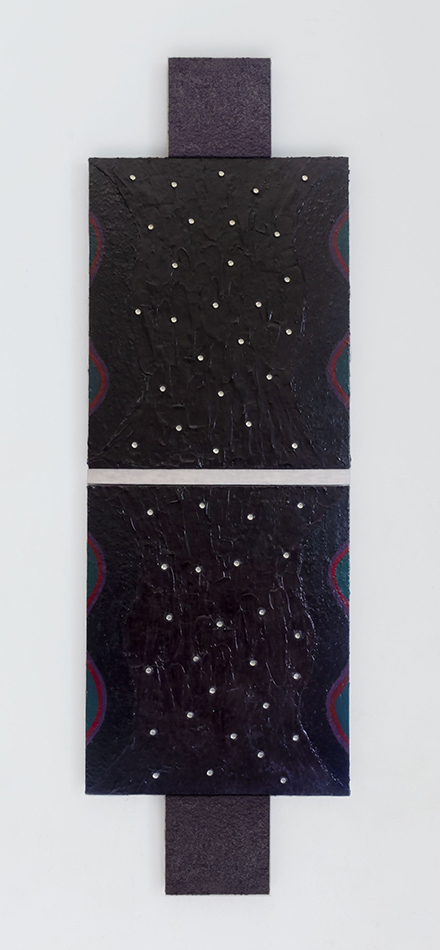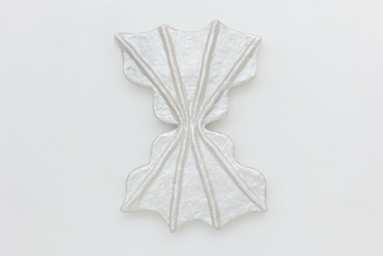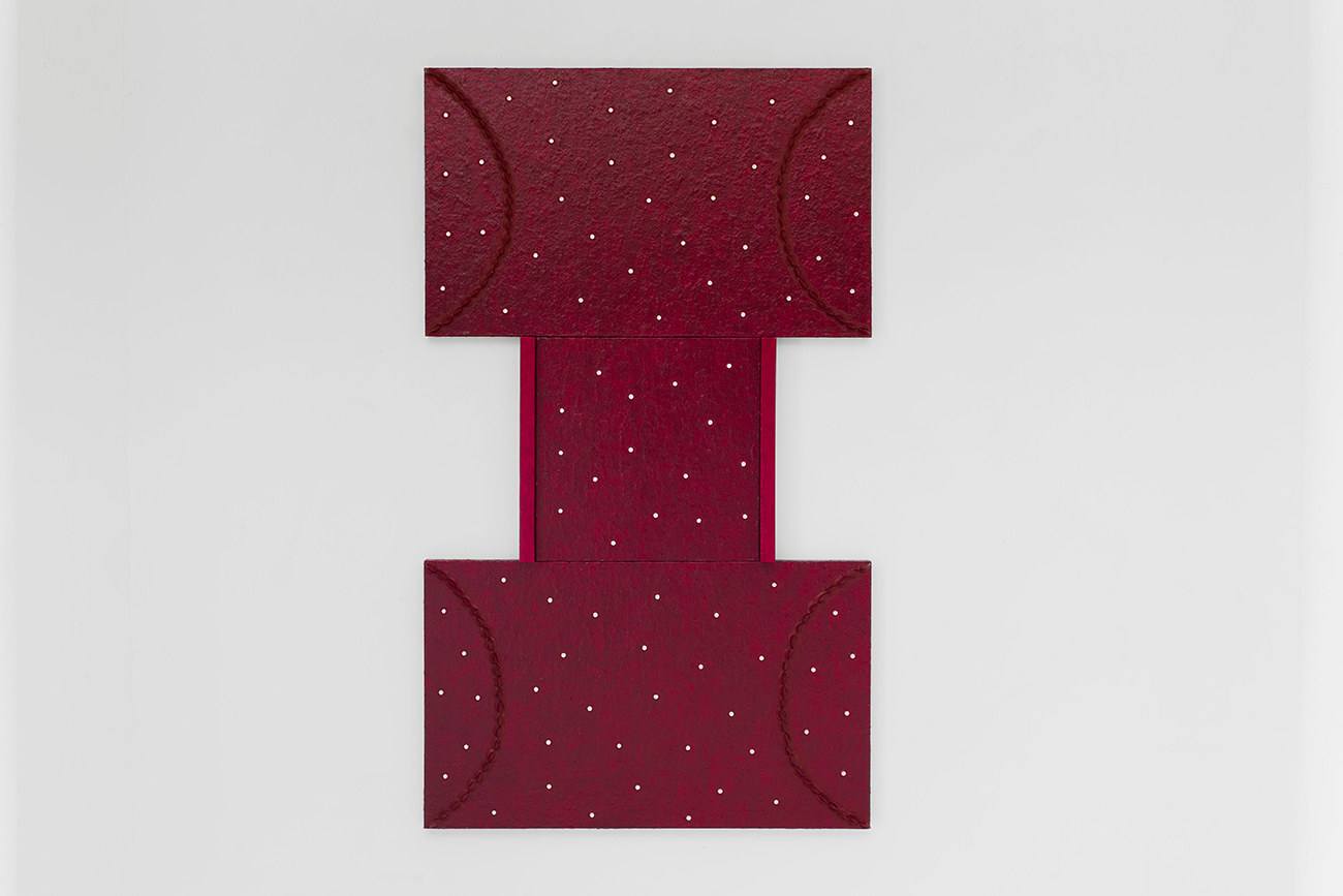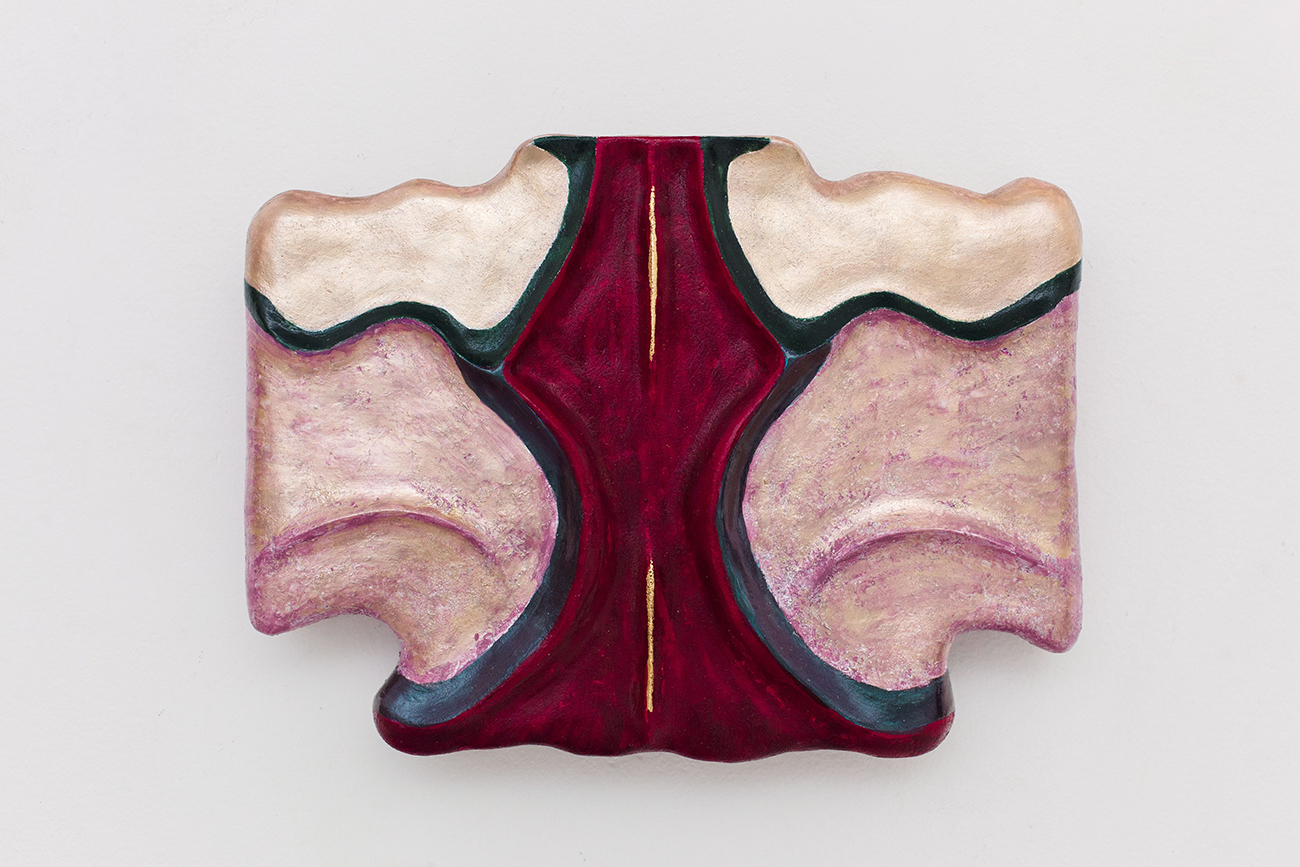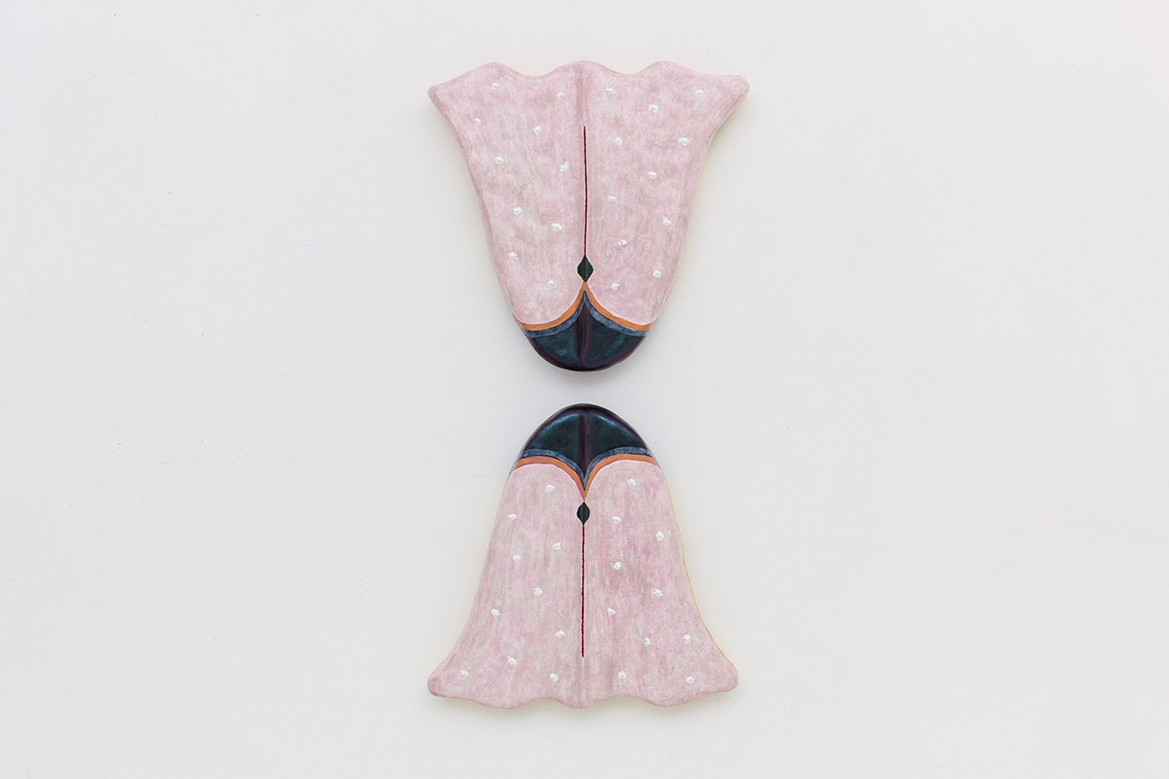 Com um conjunto de trabalhos que inclui desenhos, pinturas e relevos, Laura Teixeira se volta à relação entre a experimentação gráfica e a modulação do espaço tridimensional. Tensionando as lógicas de simetria e de campos de cor, a artista reconfigura constantemente os limites de sua intervenção na esteira de recursos como o espelhamento e o uso de formatos atípicos para composição. Por meio de materiais como esmaltes de unha, apliques de cabelo, pérolas falsas, entre outros, sua prática é informada pela acumulação de fragmentos, lembranças e outras experiências significativas do cotidiano em um desenrolar de formatos desenvolvidos internamente na rotina do ateliê.