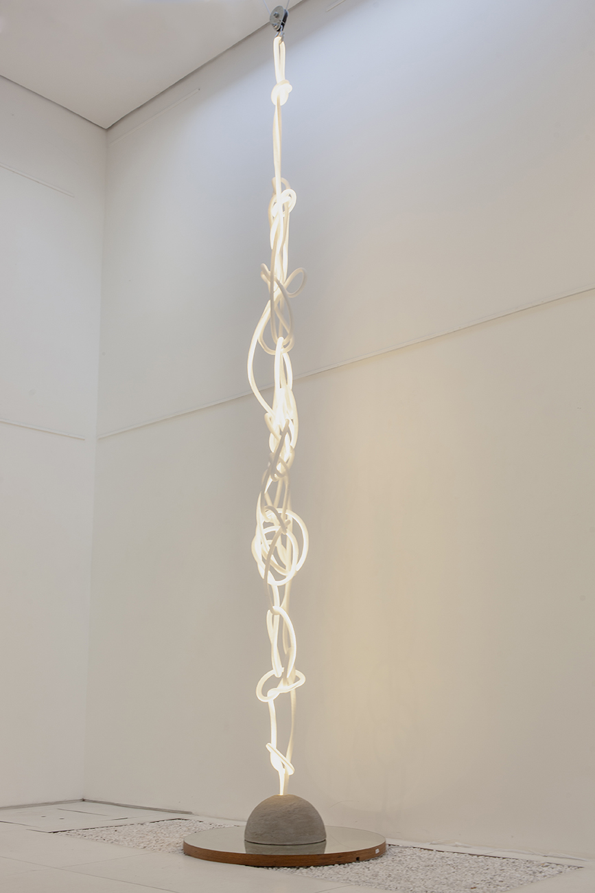 Marina Ryfer (1983, Rio de Janeiro) é artista visual e arquiteta, com uma pesquisa centrada na luz como elemento escultórico. Usa materiais cotidianos como cordas, lâmpadas, espelhos e cimento para criar obras que dialogam com o espaço e provocam sensações sutis nos espectadores. Sua prática combina arquitetura, física da luz e arte sensorial.
